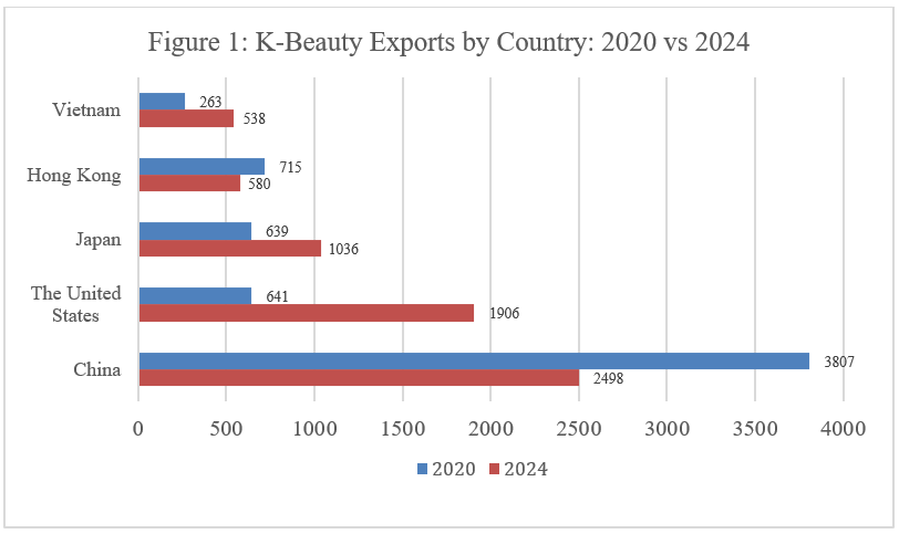 Figure 1. K-Beauty Exports by Country, 2020 vs. 2024